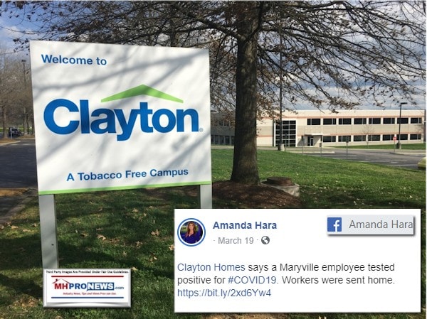It should be noted that manufactured housing industry sources within and tied to Clayton Homes have advised MHProNews about coronavirus related incidents not reported by mainstream media. See the reports above to learn more.