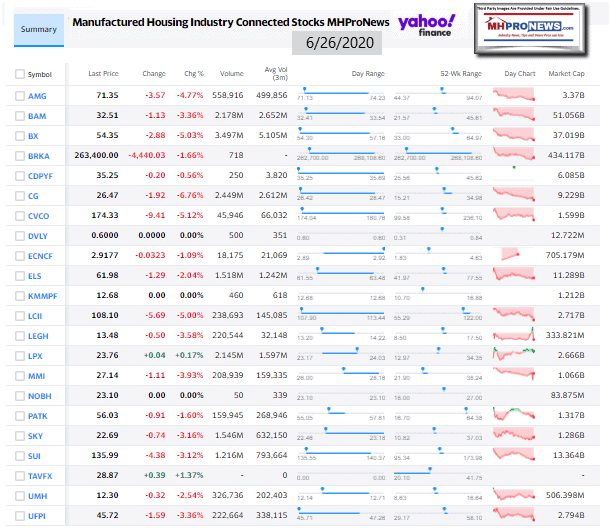 Manufactured Housing Industry Investments Connected Closing Equities Tickers