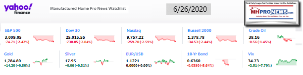 The featured focus is found beyond the left-right news headlines, two of our three market summary graphics, and our thought-provoking quotable quotes. The third of our three market summary graphics at the closing bell of manufactured home industry connected stocks is found following the featured focus and related reports, nearing the end of this article.