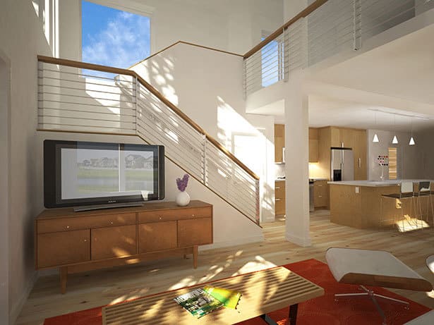 MotherNatureNews (MNN) reports that prefab home builder BluHomes has unveiled a new line of New England style modular homes that ‘fits the architectural vernacular of traditional and historic communities.’ Massachusetts-based prefab firm Blu Homes unveils Lofthouse, a New England style modular home that has already been making small waves on the green prefab scene. BluHomes startup’s focus on affordability and an innovative folding technology allows for a dramatically quicker, more efficient, and cheaper factory-to-site systems building process. Now joining BluHomes’ line up of designs dubbed Element and Evolution is the Lofthouse. BluHomes Co-founder and VP of Sales and Marketing, Maura McCarthy said: “The Lofthouse is a beautiful, precision-built green home that fits the architectural vernacular of traditional and historic communities. The MNN reported that the charming exterior of the traditional version of the Lofthouse is reminiscent of a New England barn-style home, complete with Colonial-style windows and shutters. The more modern version does away with shutters and expands the windows to provide an uninterrupted view and a true indoor/outdoor living experience.” This modular abode was inspired by “the look and feel of classic New England homes” and designed to “appeal to traditionalists and modernists alike.” So what does a “classic New England home” look like exactly? Basically, it translates to “barn-like” interior, but with a modern interior.