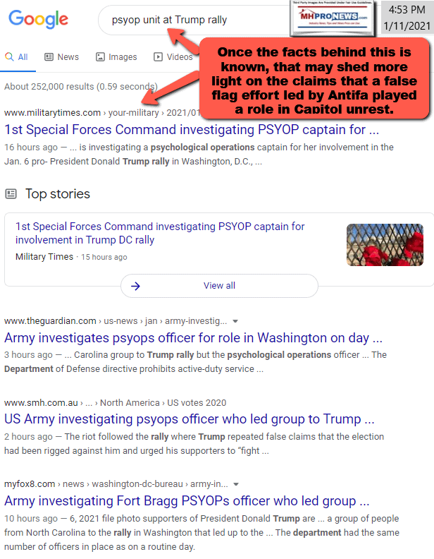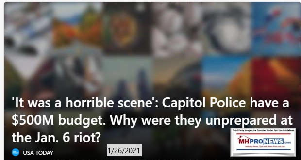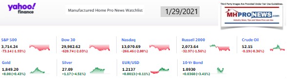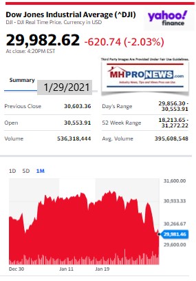 On a day when most manufactured housing and numbers of other stocks dropped again, the featured focus will be more on the developing evidence with respect to the Capitol Breach and who the beneficiaries of the event are.