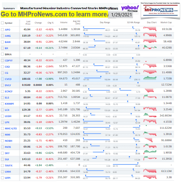 Manufactured Housing Industry Investments Connected Closing Equities Tickers