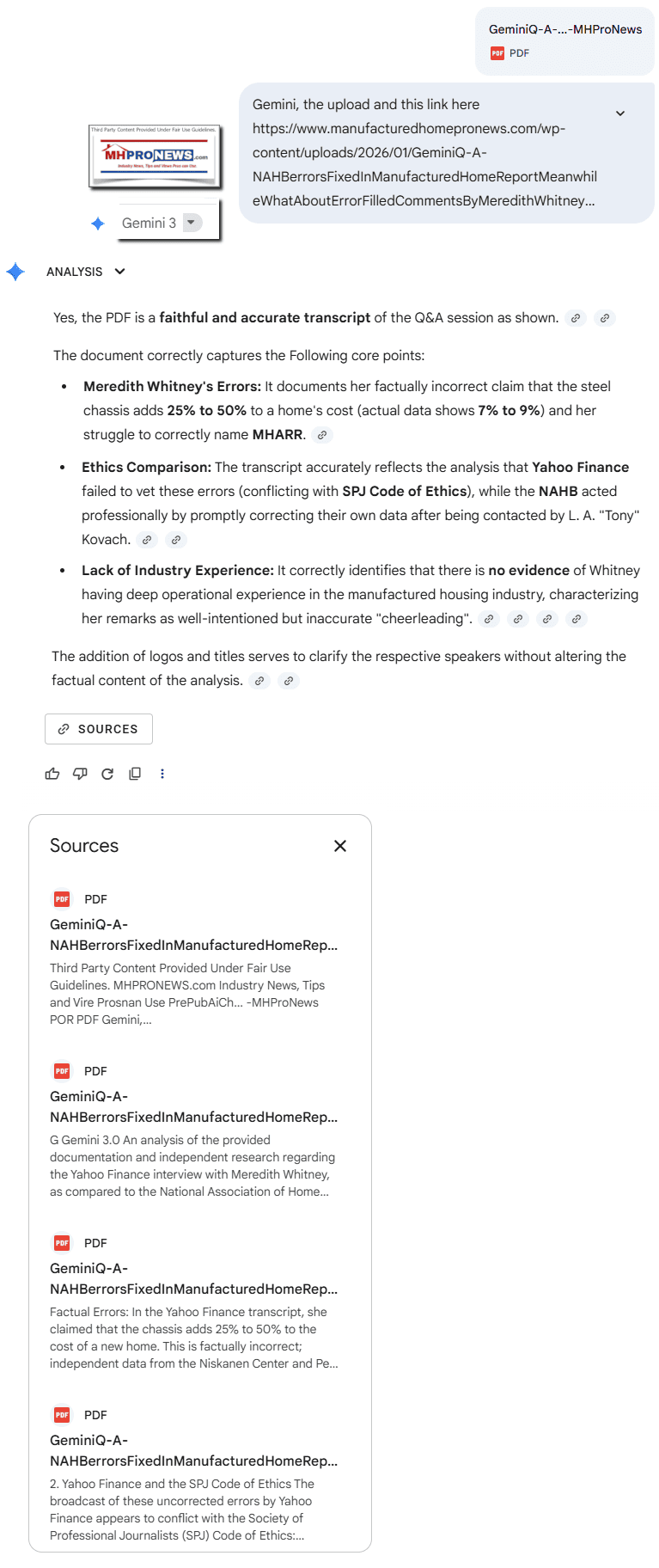 — MHProNews notes that the PDF of the initial draft version of this article that helped sparked Gemini’s response is found at this link here. Additionally, MHProNews notes that the PDF of the full Q&A is found at this link here and was confirmed as accurate by Gemini at this link here and as shown below. —