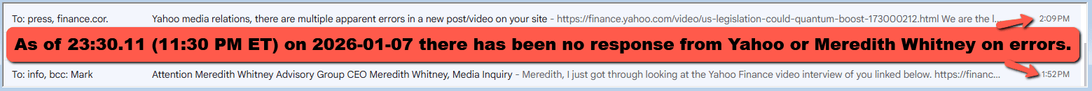 Part I. Relevant emails on Meridith Whitney’s controversial remarks as posted by Yahoo Finance on 1.7.2026