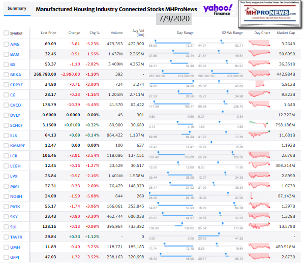 Manufactured Housing Industry Investments Connected Closing Equities Tickers