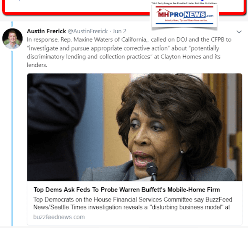 Those manufactured housing industry ‘bad actors’ routinely have ties to Clayton, their lenders, and Berkshire Hathaway or the Berkshire dominated Manufactured Housing Institute – see the evidence, linked here.