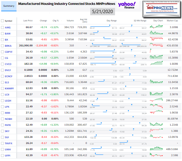 Manufactured Housing Industry Investments Connected Closing Equities Tickers