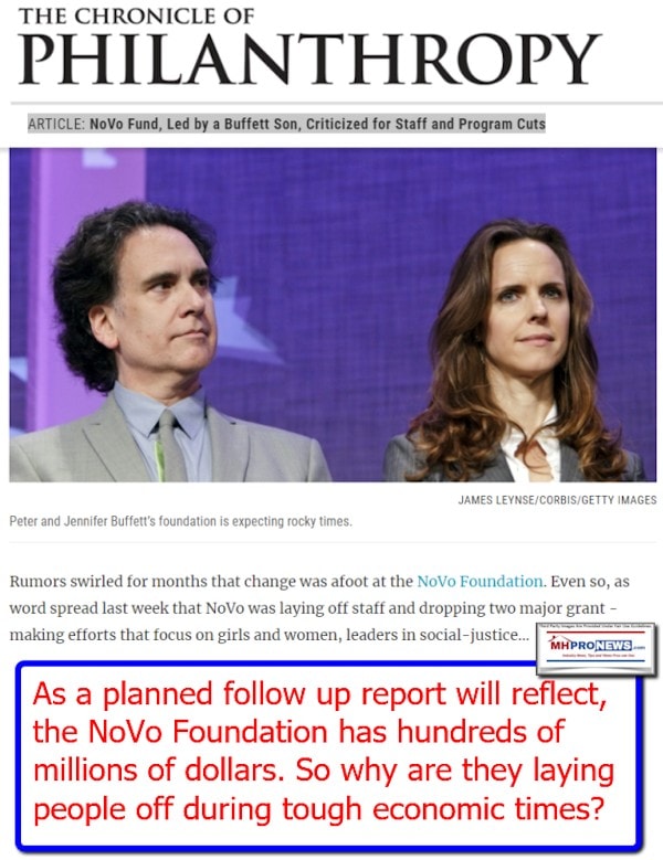 Peter Buffett. Jennifer Buffett. Warren Buffett. The NoVo Foundation. Who they have donated money to support. How those donations impact and/or influenced manufactured housing. These will all be explored in tonight’s featured focus.