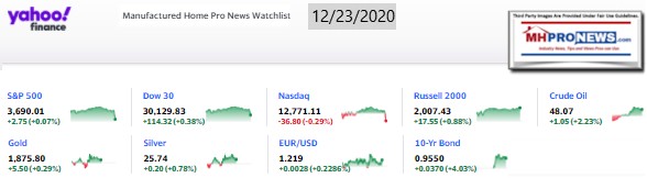 That noted, for first time readers, the featured focus follows thought provoking quotable quotes, today’s left-right headline recap, and two of the three market snapshots at the closing bell today. The manufactured housing market summary of publicly traded equities at the close today follow the featured focus and the linked recent/related reports.