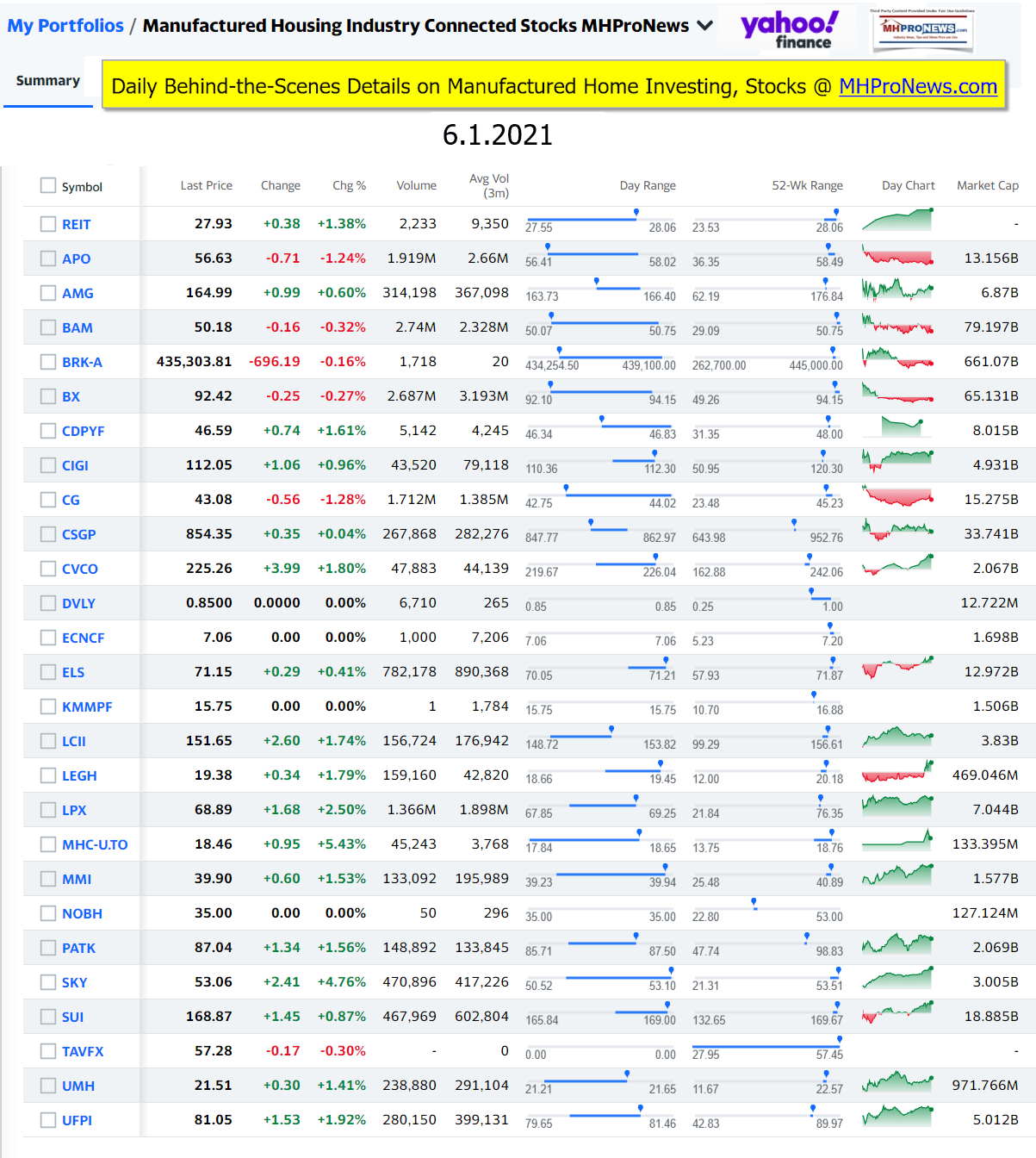 Manufactured Housing Industry Investments Connected Closing Equities Tickers