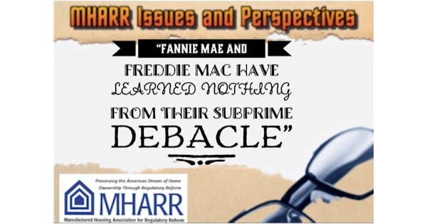 Or where is there a similar push by MHI to get the federal government to fully and properly implement the Duty to Serve Manufactured Housing, underserved and rural markets mandated by Congress in the Housing and Economic Recovery Act (HERA) of 2008 on Fannie Mae, Freddie Mac, and supposedly regulated by the FHFA?