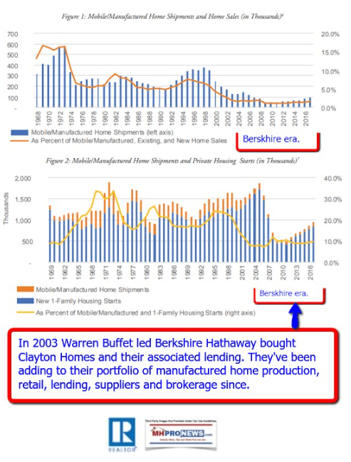 Note: Clayton claims in their 2017 annual report to have ‘only’ 47.7% of the manufactured housing market. But Berkshire Hathaway reports don’t make that point clear. Clayton clearly has an outsized influence on the manufactured housing marketplace. That in turn arguably distorts lobbying, media, capital, financing, and other influences on the most affordable kind of permeant housing built in America.