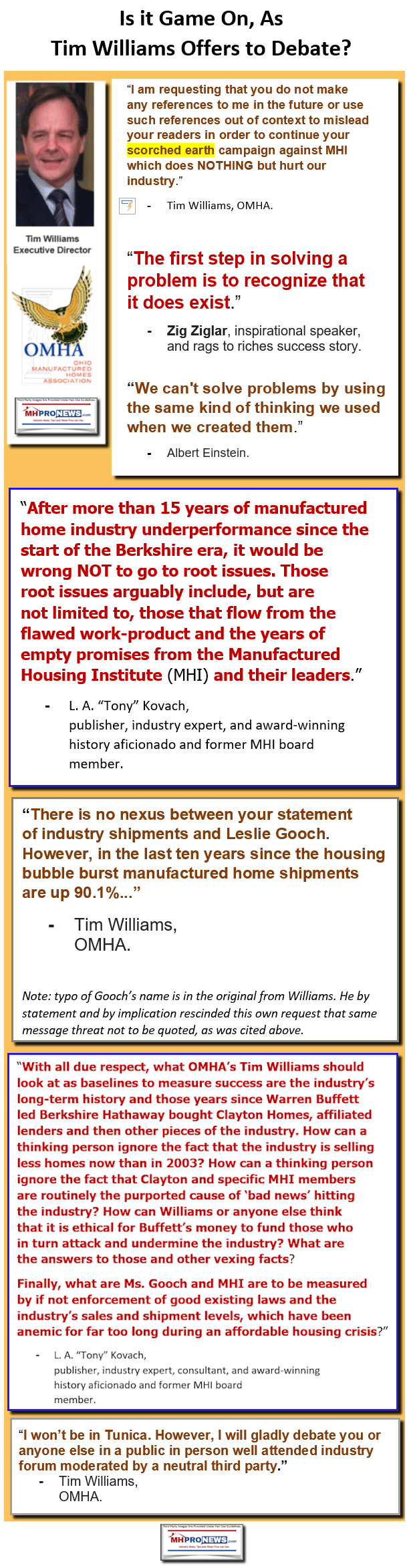 TimWilliamsPhotoOhioManufacturedHomesAssocLogoOMHAlogoTimWilliamsWillingToDebateNoNexusLesliGoochIndustryPerformanceMeasuresManufacturedHomeProNewsTonyKovach