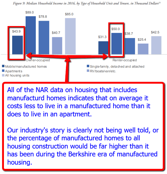 Given the facts already presented and linked, how can someone rationally explain the lack of a concentrated push of such important and useful third-party research by the industry’s largest firms and several trade groups will be examined later. But suffice it for to say for now, that their failure to properly promote such research explains in part why the manufactured home industry is struggling, while conventional housing is soaring.