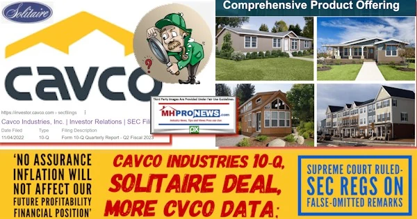 With that foundation, the following is Cavco’s 10Q found in the report by MarketScreener published on 11.4.2022. The segment taken immediately below from their 10Q can also be found online with the SEC, but the Solitaire related item was via Cavco’s investor page.