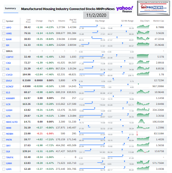 Manufactured Housing Industry Investments Connected Closing Equities Tickers