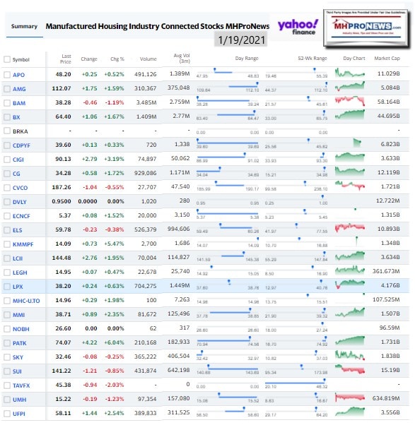 Manufactured Housing Industry Investments Connected Closing Equities Tickers