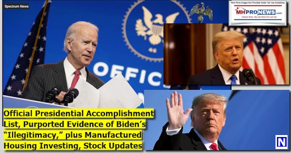The featured focus reflects the formal list provided by the still-Trump Administration White House to MHProNews. Noting that much of their list has to do with pre-pandemic accomplishments. But pandemic related issues are also shown. While some pandemic related items might be nuanced or debated, the thrust of the list is difficult for anti-Trumper to debate. Which perhaps explains why the opponents of the 45th President and his agenda tends to cancel, bully, use red herrings (dodge), or provide smears (so-called ad hominem attacks) debate instead of authentically debating a policy or outcome.