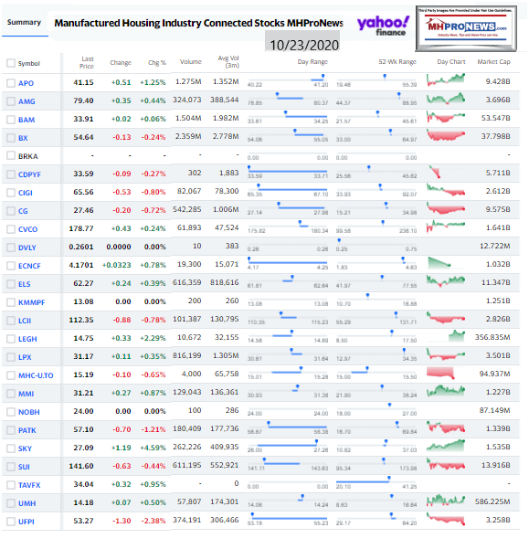 Manufactured Housing Industry Investments Connected Closing Equities Tickers