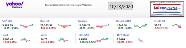 This evening’s featured focus is found following tonight’s quotable quotes, the left-right headlines, and two of our three market snapshot graphics at the closing bell today. The final market graphic that summarizes over a dozen manufactured housing industry connected stocks at the closing bell follow the featured focus, recent and related report links.