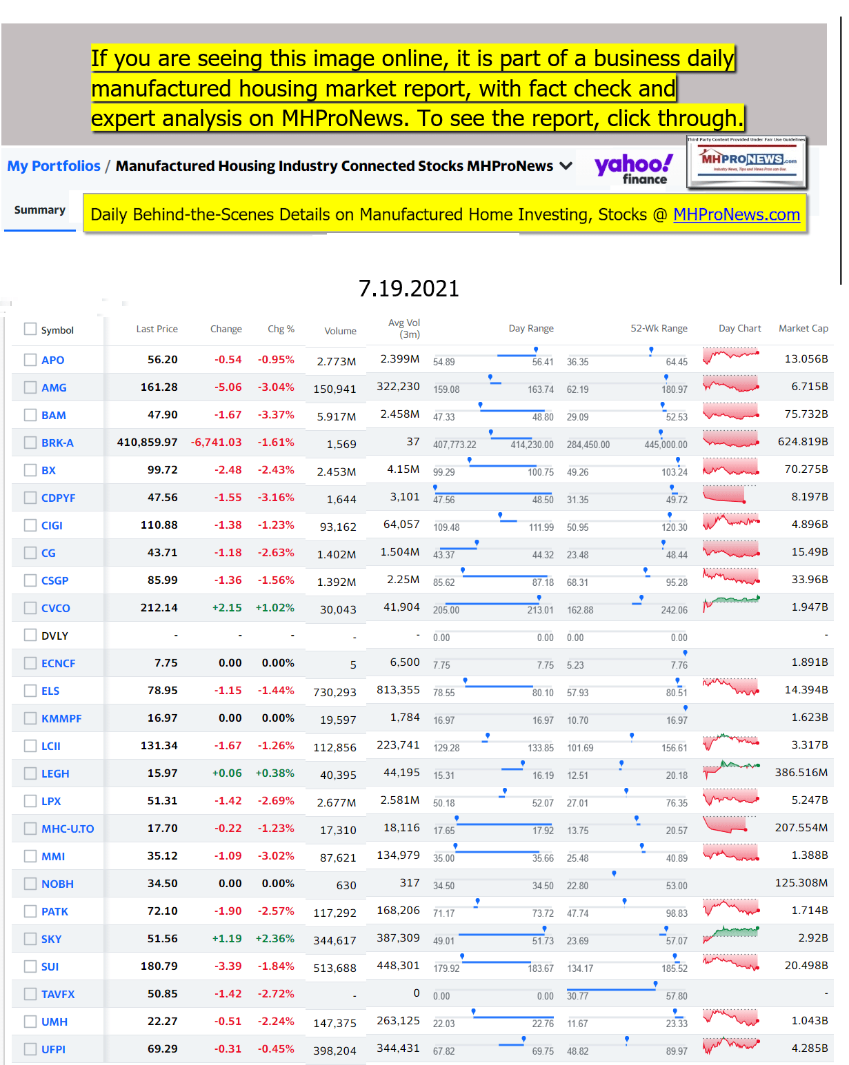 Disclosure. MHProNews holds no positions in the stocks in this report.