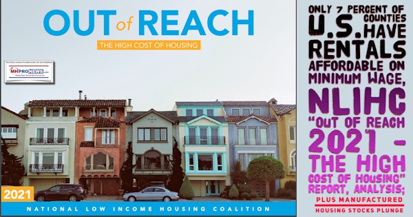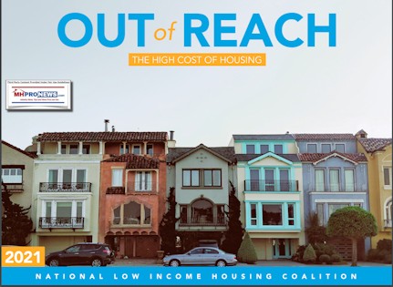 The full Out of Reach 2021: The High Cost of Housing report is available at:” this link here. MHProNews Note: while the NLIHC data may be routinely correct, their advocacy is often wide of the mark. Their stated goal sounds laudable. However, their proposals demonstrably have failed to achieve those goals for decades, as some analysis in brief shown below will reflect.