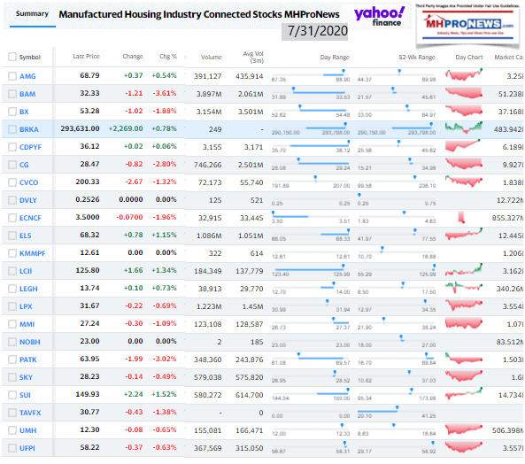 Manufactured Housing Industry Investments Connected Closing Equities Tickers
