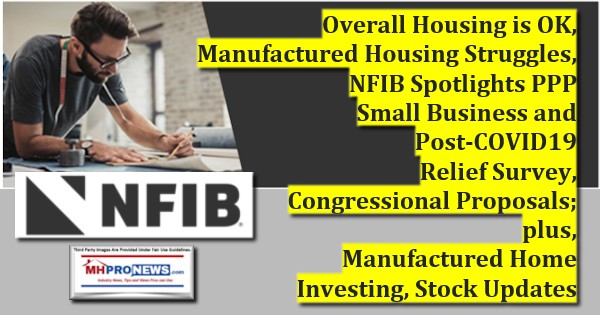 That tees up today’s featured focus are their Congressional proposals and the latest in the survey from small business. The featured focus segment of this evening’s market report is found beyond the left-right headline news bullets and 2 of our 3 market snapshots at the close today. The manufactured housing industry connected stocks are near the end of the report each evening, after the featured focus and the related/recent report links.