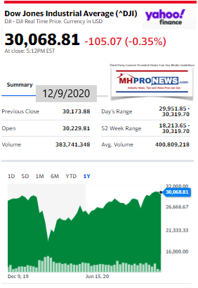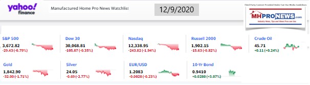For new readers, the featured focus follows thought provoking quotable quotes, today’s left-right headline recap, and two of the three market snapshots at the closing bell today. The manufactured housing market summary of publicly traded equities at the close today follow the featured focus and the linked recent/related reports.