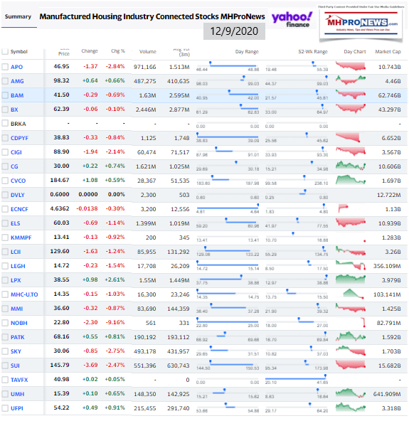 Manufactured Housing Industry Investments Connected Closing Equities Tickers