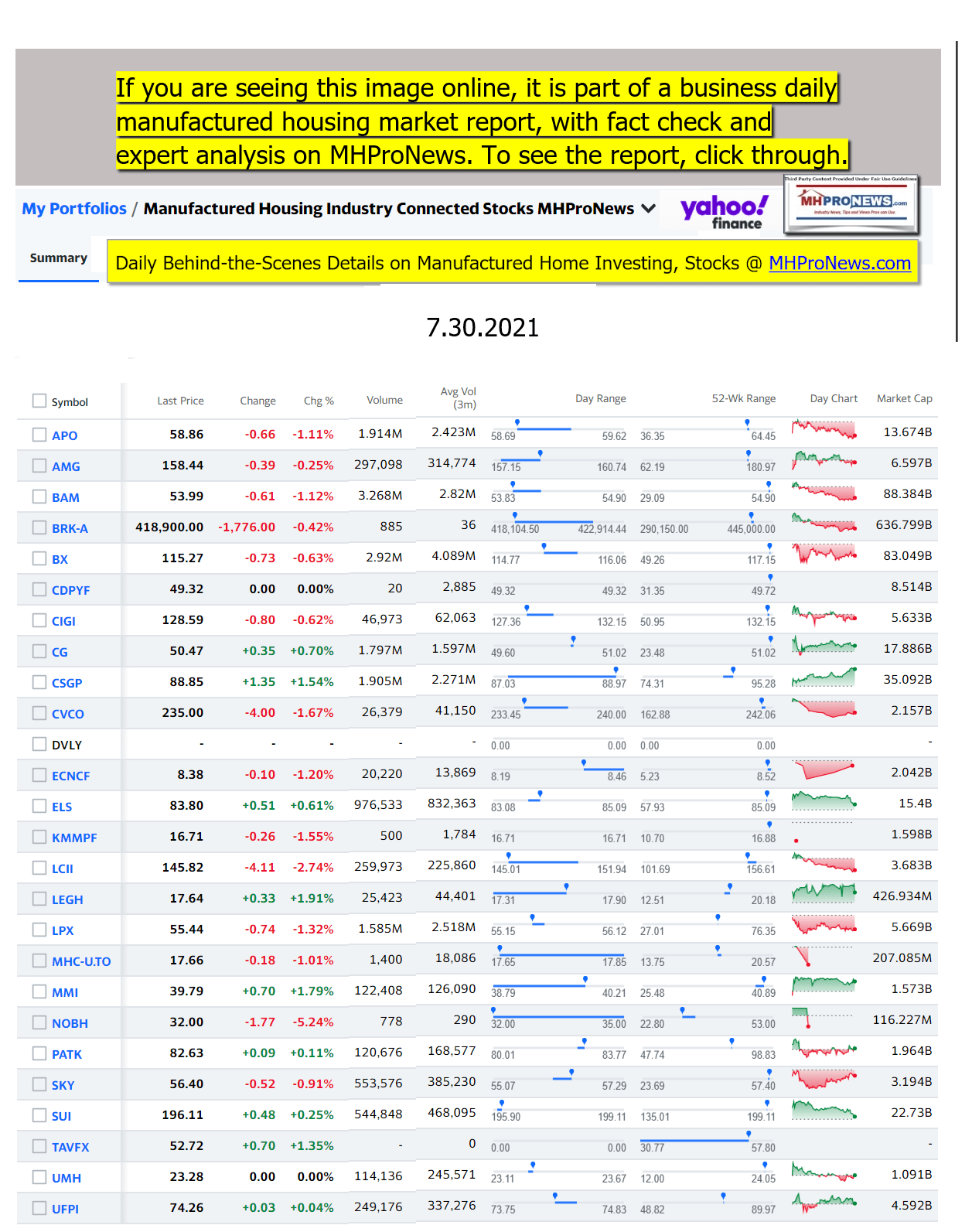 Manufactured Housing Industry Investments Connected Equities Closing Tickers