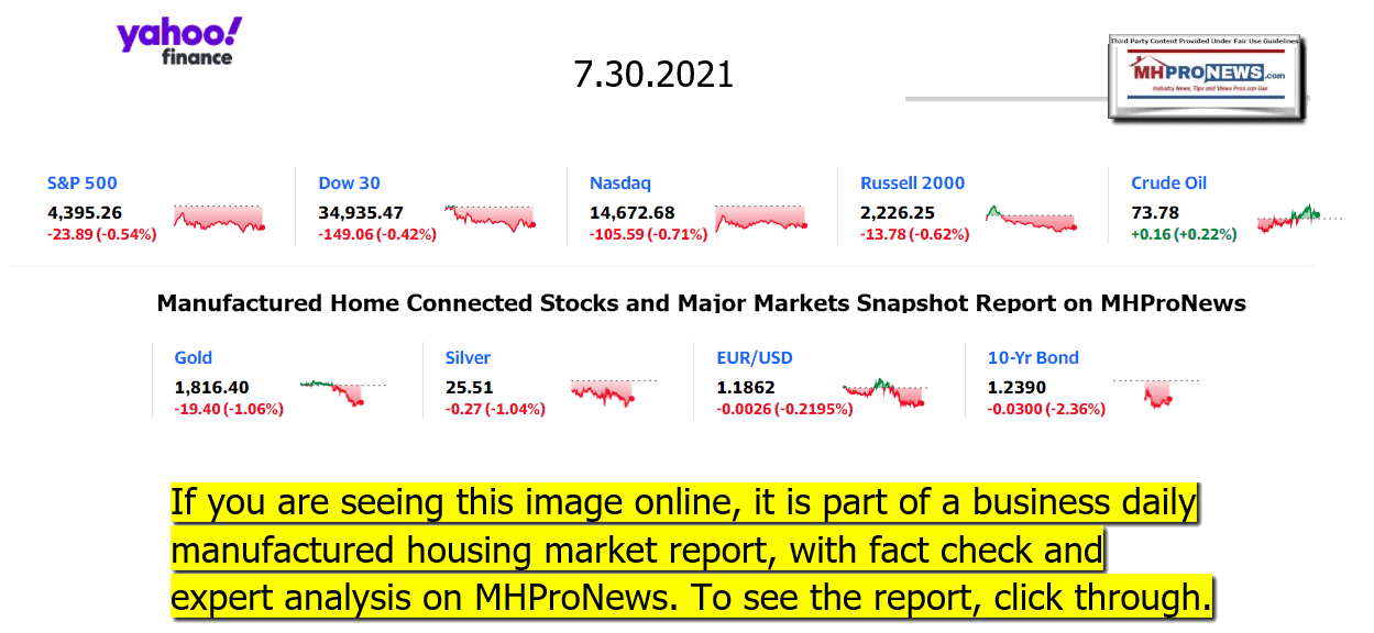 The Business Daily Manufactured Home Industry Connected Stock Market Updates. Plus, Market Moving Left (CNN) – Right (Newsmax) Headlines Snapshot. While the layout of this daily business report has recently been modified, several elements of the basic concepts used previously are still the same. The headlines that follow below can be reviewed at a glance to save time while providing insights across the left-right media divide. Additionally, those headlines often provide clues as to possible ‘market-moving’ items.