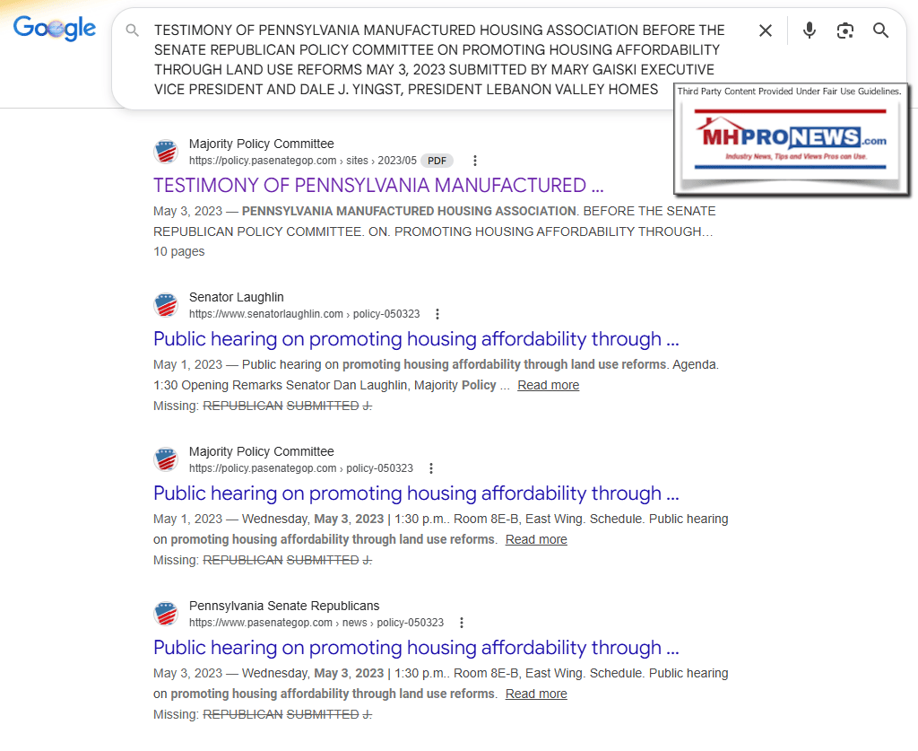 Gemini, while there are certainly other search terms that could have been used, this one https://www.manufacturedhomepronews.com/wp-content/uploads/2026/04/MaryGaiskiTestimonyToPASenateGOP-PolicyOnPromotingAffordableHousingThroughLandUseReformsGoogle4.14.2026.png reveals that with that search phrase only results on the PA Senate website are among the four results. Can you find that document on PMHA’s website? Can you find it on the Manufactured Housing Institute (MHI or manufacturedhousing.org) website? Did either issue a press release? Post it on social media? Did any MHI linked blogger mention this testimony? Is it curious, or troubling, or vexing, or Orwellian, or what that Gaiski has cited the need for a better image, the need for access to more financing, and the need for what amounts to state preemption (without using the term preemption) without mentioning federal preemption under the Manufactured Housing Improvement Act of 2000? Isn’t it the job of PMHA and/or MHI to push those points? Apply the facts-evidence-analysis (FEA) methodology to the developing draft linked here: https://www.manufacturedhomepronews.com/wp-content/uploads/2026/04/PrePubAIchkPerceptionIsGreatestChallengeToAffordableHousingParticularlyForManufacturedHousingTestimonyOfPennsylvaniaManufacturedHousingAssocEVP.MaryGaiskiSenatePolicyCommitteeFEA.pdf Do whatever online searches are relevant or warranted. Use plain text hyperlinks to support your findings.