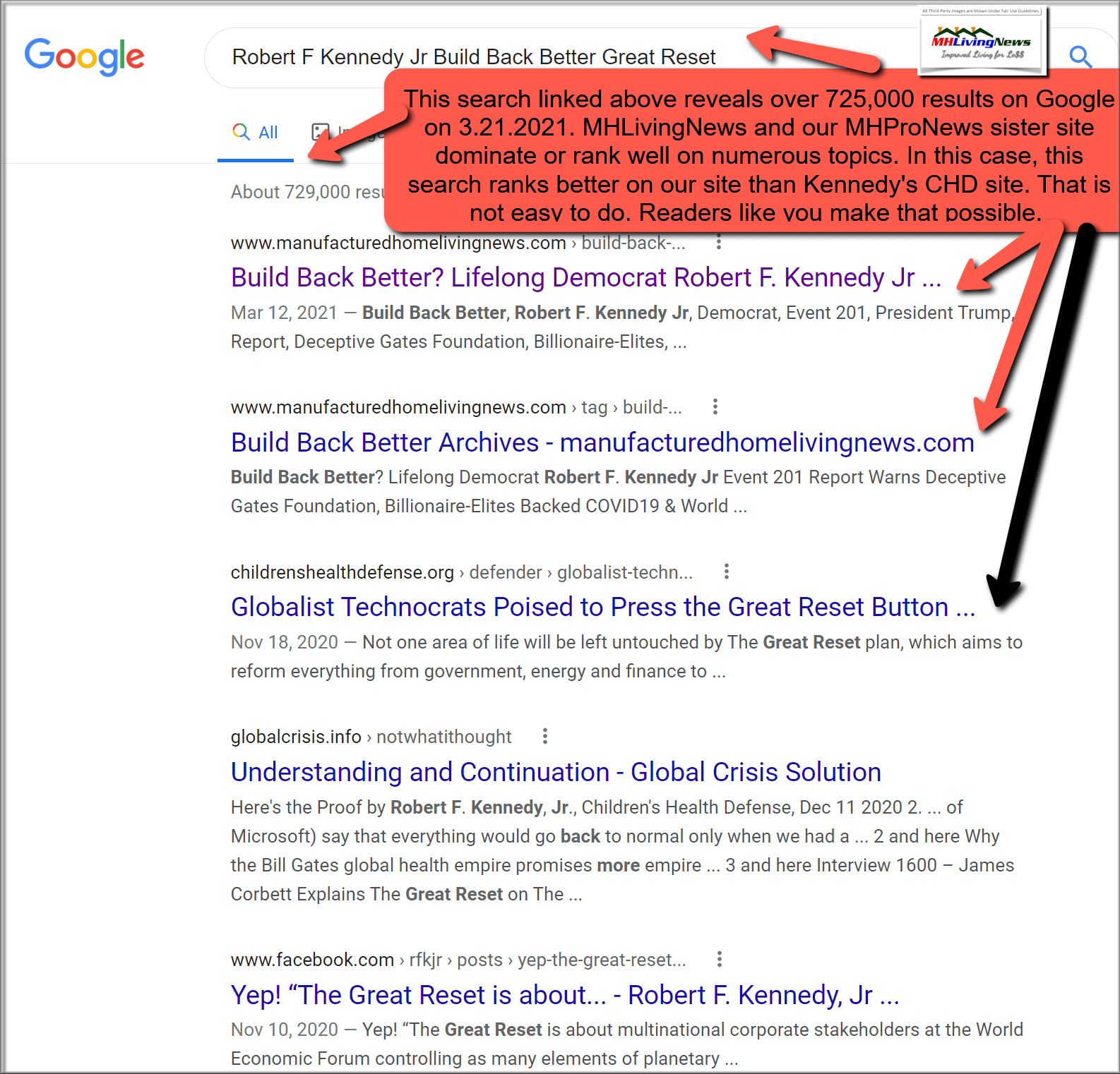 - Health, COVID19, and “Built Back Better.” Let’s be direct for a moment. If someone from the political right said these same things as lifelong Democrat Robert F. Kennedy Jr has said, they would be dismissed by leftists as ‘right wing extremists’ and ‘conspiracy theorists.’ But with a Kennedy saying it, that is not quite so easy, is it? When someone carefully reads that report, it should accomplish several things. Among them, a realization that there are numerous points of common ground between concerned and thoughtful professionals across the left and the right. The ties and impacts to affordable housing and manufactured homes specifically are numerous.
