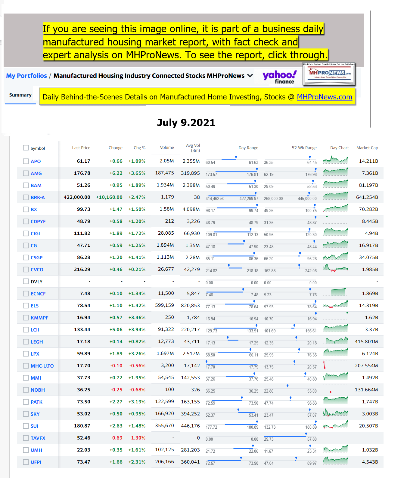 Manufactured Housing Industry Investments Connected Equities Closing Tickers