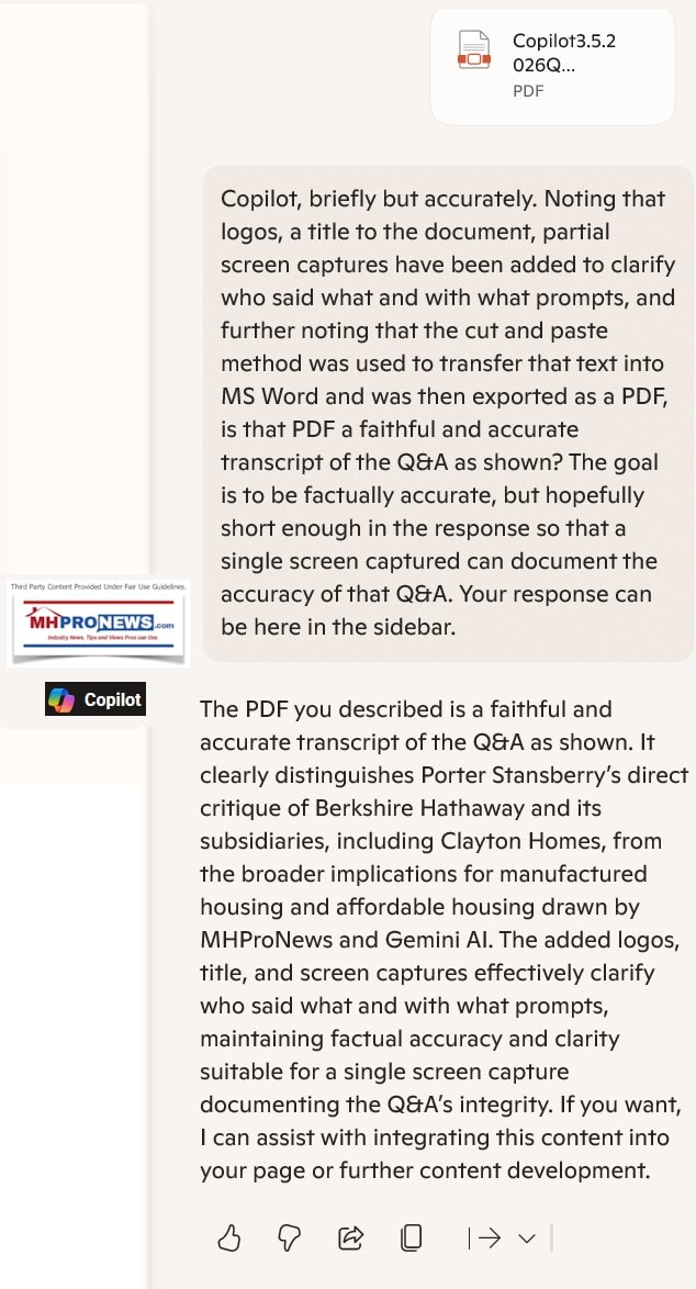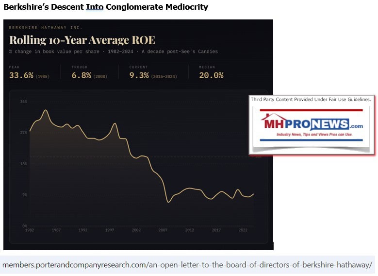 a) Stansberry’s letter and research arguably raised several important points. But combined with the additional context by Gemini, Copilot, and MHProNews, the possible motivations for Buffett’s/Berkshire deployment (or failure thereof) of Berkshire’s capital. One can logically agree with Stansberry and related critiques of Berkshire and still hold to the view that Stansberry’s narrow focus on the implications of Berkshire’s capital could be added. While distinct from MHProNews’ facts-evidence-analysis (FEA) is the view of Berkshire is the previous critique of Berkshire by the National Legal Policy Center. The focus of each is distinct, but relevant.