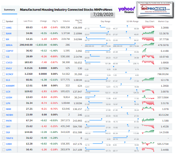Manufactured Housing Industry Investments Connected Closing Equities Tickers