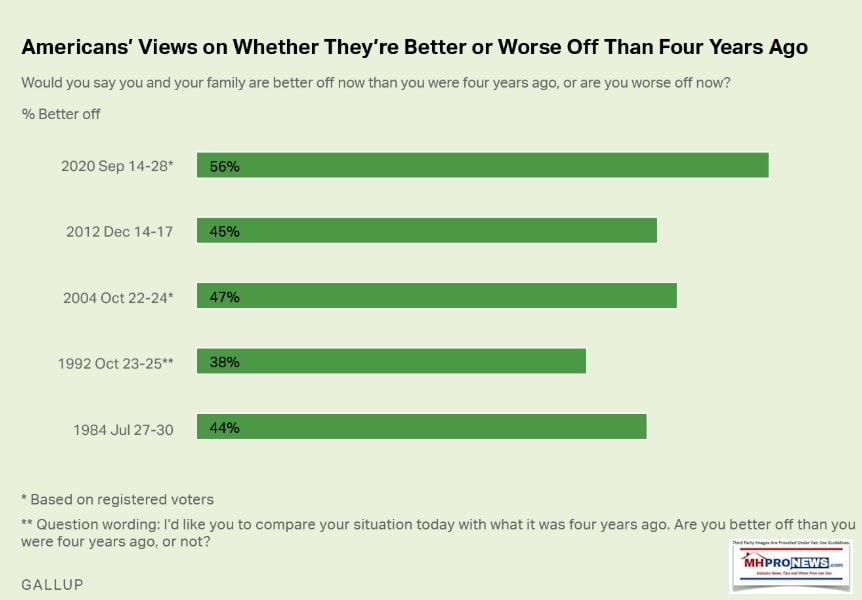 Gallup’s most recent survey found a clear majority of registered voters (56%) saying they are better off now than they were four years ago, while 32% said they are worse off.”