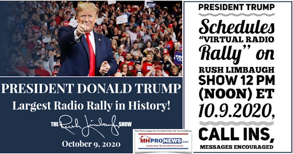 The odds are likely millions to one against the following being read on air in the Trump Virtual Rally today on the Rush Limbaugh Show today. But MHProNews co-founder Soheyla Kovach said the following in an email earlier today to the Limbaugh show, in support of the president’s reelection bid.