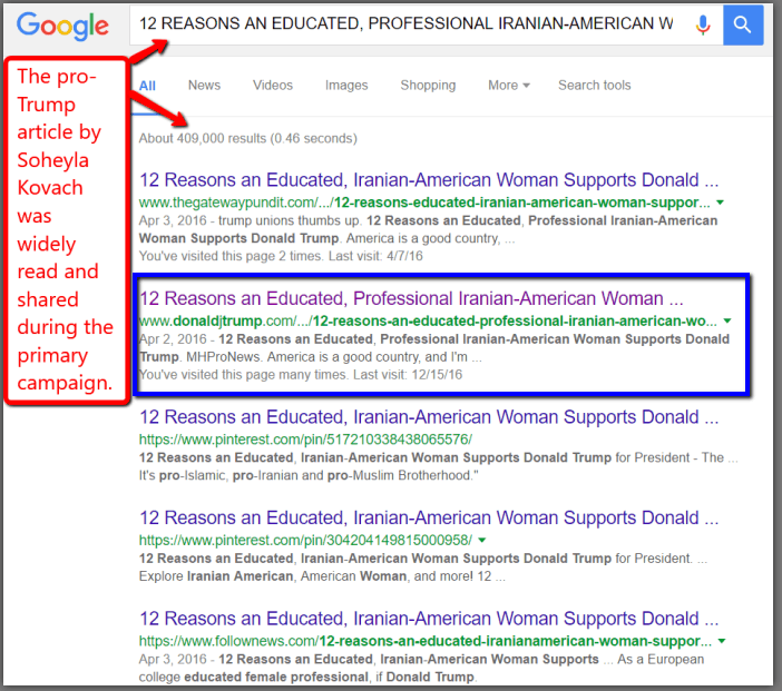 I’m an immigrant from Iran, a woman born in a Muslim society. I was educated in Europe, speak three languages, and a letter of mine supporting your candidacy in 2016 was posted to your campaign site that year. In 2019, I became a U.S. citizen. My first vote will be for you, Vice President Mike Pence, and those down ballot candidates who support your anti-Communist, America First agenda. Lies told to the people in my beloved Persian homeland before the Iranian revolution brought radicals to power in Iran were much like those lies being told by certain Democratic Party leaders today.