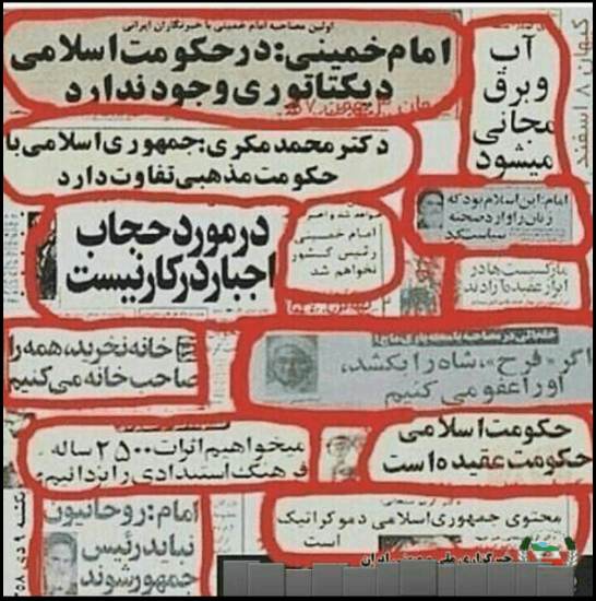 Soheyla has previously featured this image in Farsi, which illustrates the point made above about various promises made to Iranians in the 1970s prior to the Soviet Russian supported revolution that overthrew the pro-U.S. Shah of Iran. The pledges circled in red were broken.