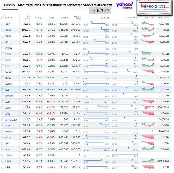 Manufactured Housing Industry Investments Connected Closing Equities Tickers