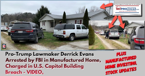 One of those lawmakers with ties to manufactured home living is West Virginia Delegate Derrick Evans. Evans was arrested in a manufactured home today, according to video capture by WSAZ photojournalist Chad Hedrick.