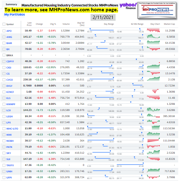 Manufactured Housing Industry Investments Connected Closing Equities Tickers
