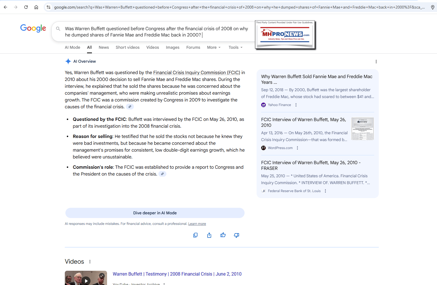 | Buffett on Fannie/Freddie (Page 33) | Accurate | FCIC 2010: Sold due to “unrealistic promises about earnings growth.” FCIC Report. |