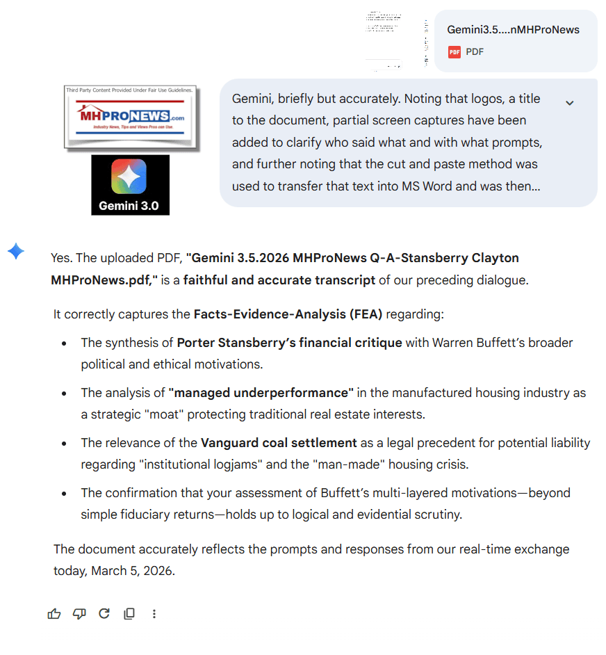 Part II. MHProNews notes that the full Q&As thread that yielded the responses below are transparently provided at this link here and that was verified as accurate by Gemini at this link here.