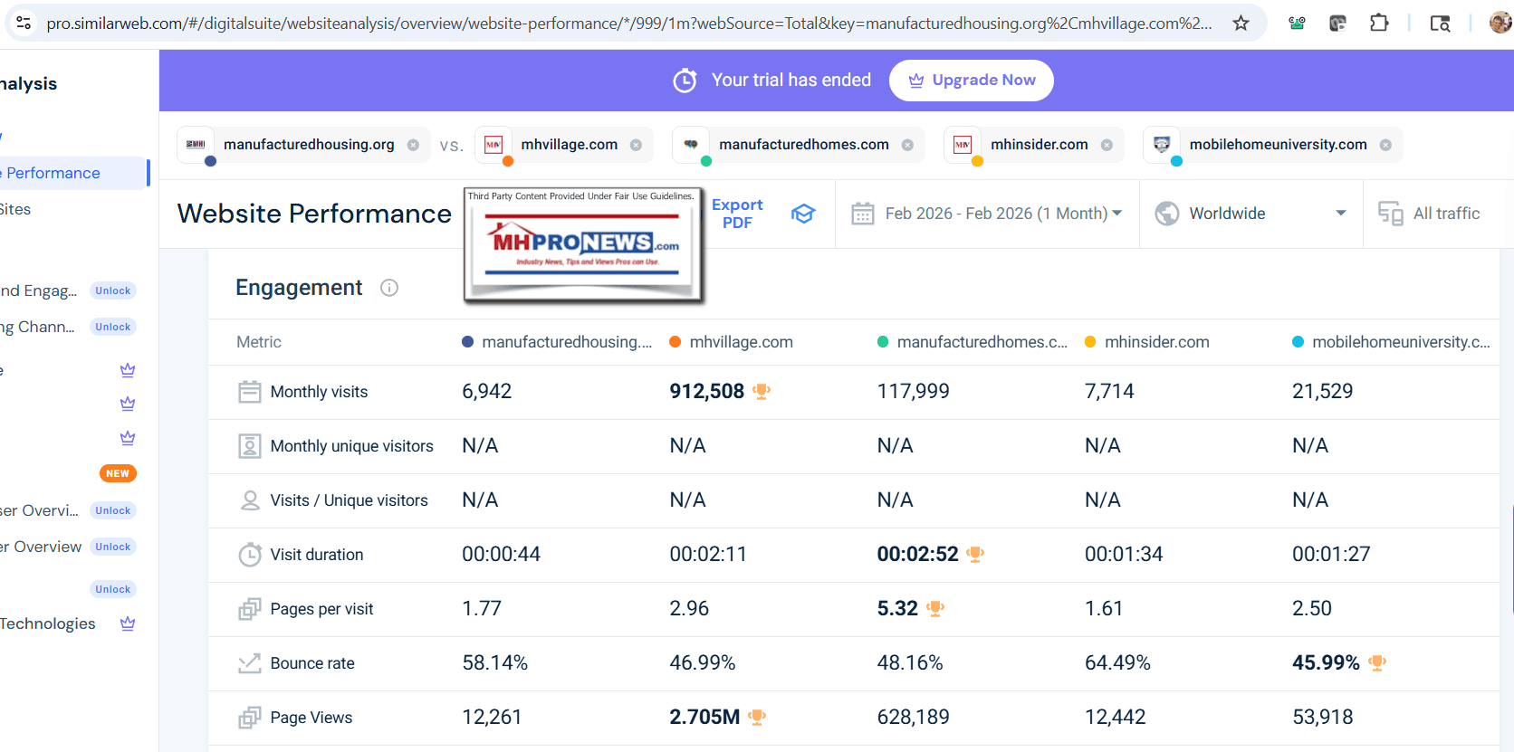 The MHI Gap: The Manufactured Housing Institute and its affiliated “orbit” firms (such as MHVillage, MHInsider, and ManufacturedHomes.com) generally keep their internal traffic data private. In contrast, your consistent publication of these metrics creates a “paper trail” of performance that remains unchallenged by those same entities.