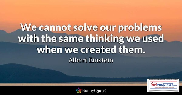 As we’ve noted numerous times over the years, the evidence only mounts as to just how badly the system is rigged. You do not have to be an Einstein to realize that the current industry leadership that led manufactured housing into this mess will not be the ones to lead independents and authentic manufactured home advocates out of it.