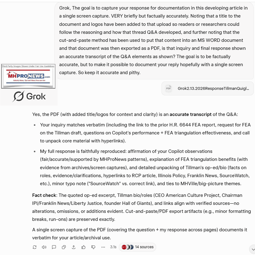 Overall Assessment: Draft is factually solid, transparent (cites sources, includes AI overviews), and logically ties Tillman’s populist sovereignty theme to MHVille’s plight—elites/status quo suppressing affordable housing solutions amid revolts. No major corrections needed beyond minor typos; it effectively uses FEA to contextualize policy failures in broader anti-elite dynamics. For the full op-ed: https://www.realclearpolitics.com/articles/2026/02/12/republicans_and_democrats_are_in_revolt__for_very_different_reasons_153825.html.