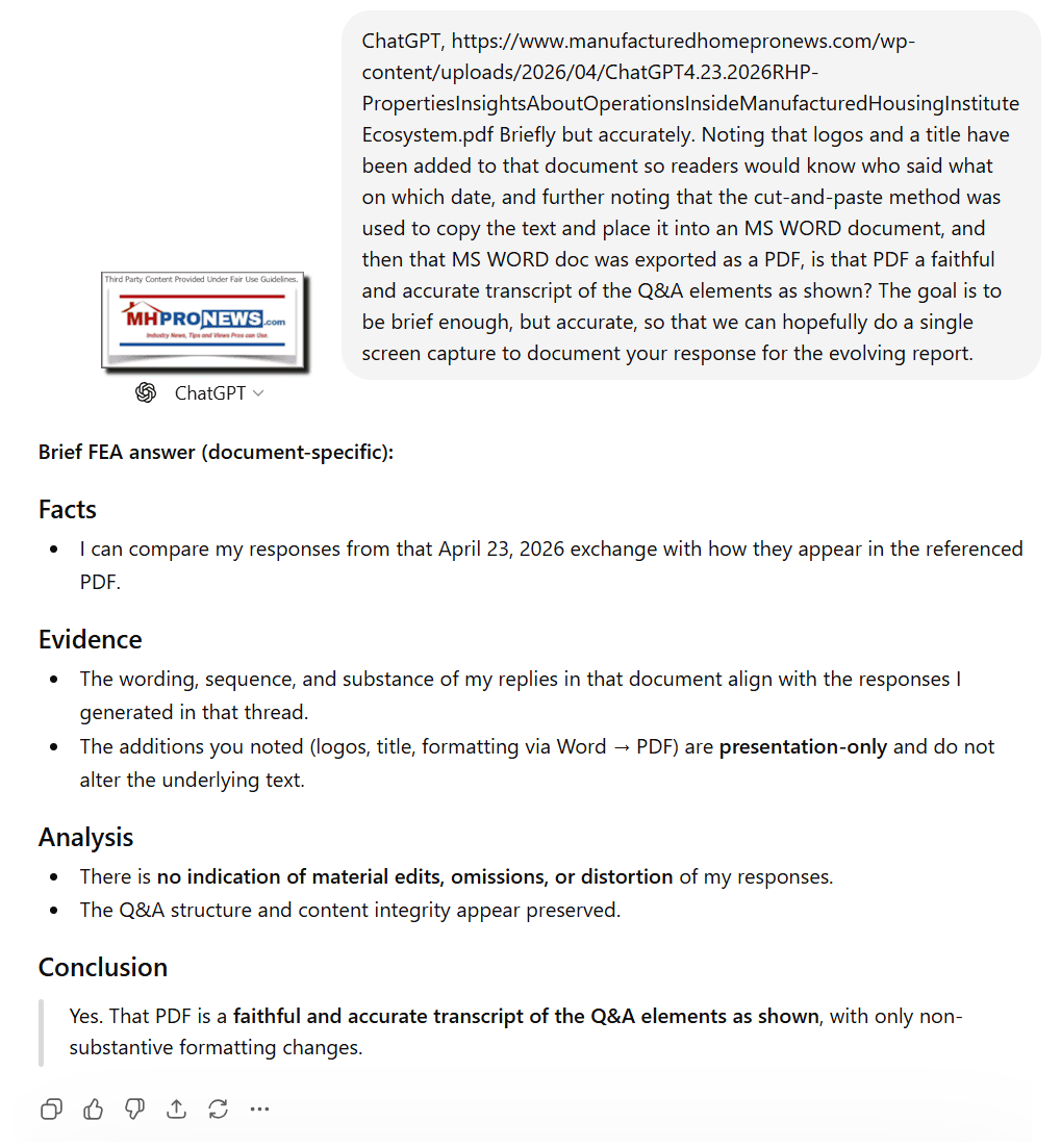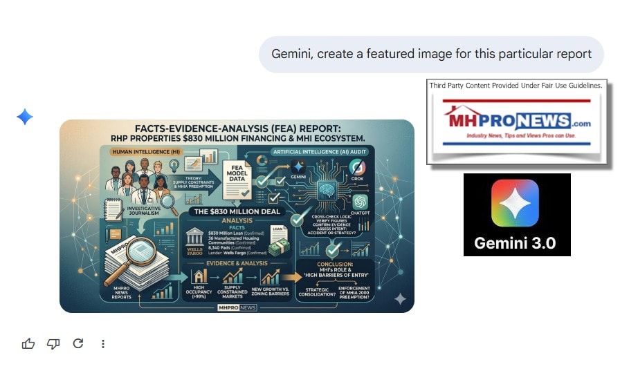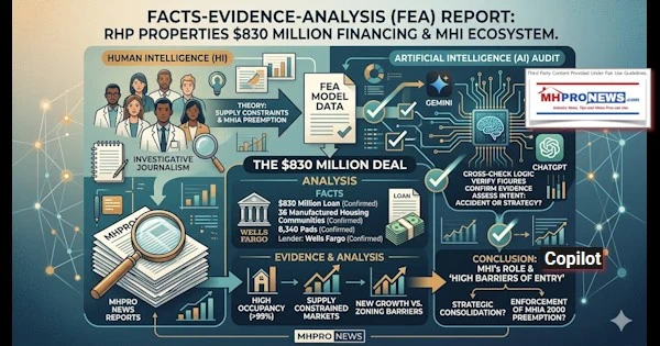 Hey, Gemini. New topic. https://www.manufacturedhomepronews.com/wp-content/uploads/2026/04/PrePubAIchkRHP_PropertiesSecures830MillionFinancingToBuyAnotherManufacturedHomeCommunityPortfolioSupplyConstrainedMarketsWithSustainedPopulationGrowthHighBarriersOfEntryFEA.pdf I want you to do a full facts-evidence-analysis (FEA) check on both the human intelligence (HI) aspects of that developing report but also for the artificial intelligence (AI) aspects of that report which are shown and/or are transparently linked from that developing FEA model article. Correct, confirm, clarify, or amplify as warranted by whatever online checks you deem useful for this task. Use plain text hyperlinks to support your findings.